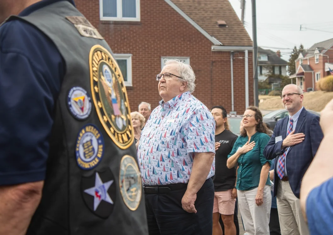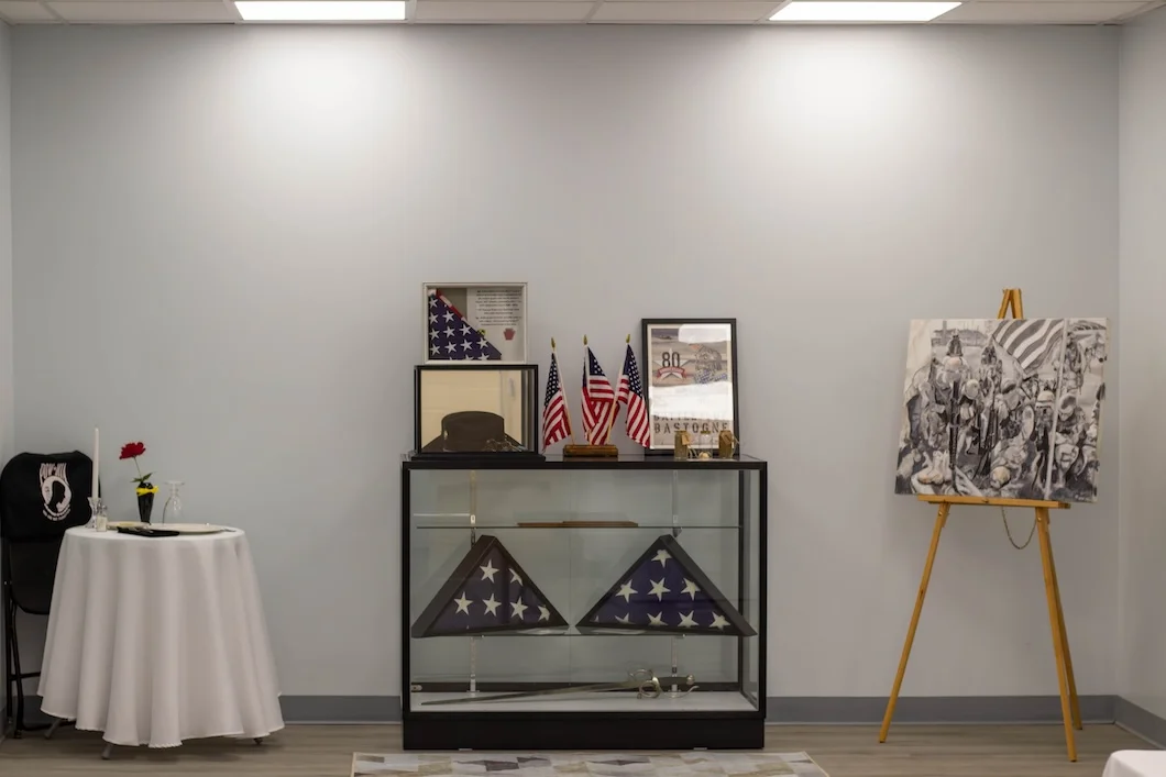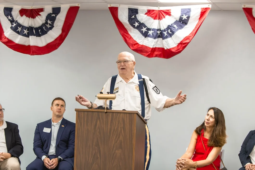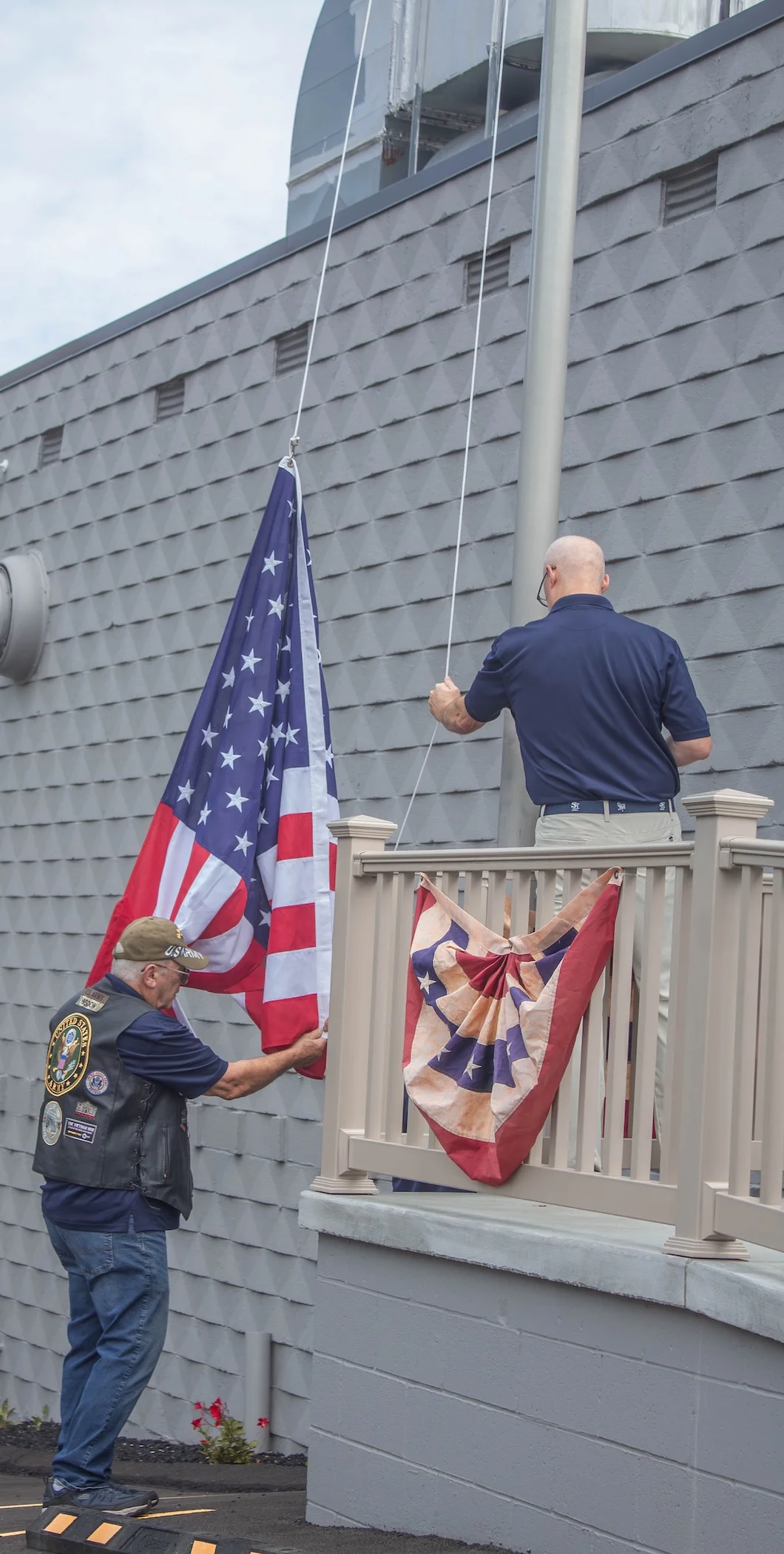 A flag raising ceremony was held outdoors followed by a ribbon cutting and a champagne toast followed by a presentation by Lesley Mann, board member and Vice President at GBU Life. The event was filled with veterans and volunteers who made this renovation possible.